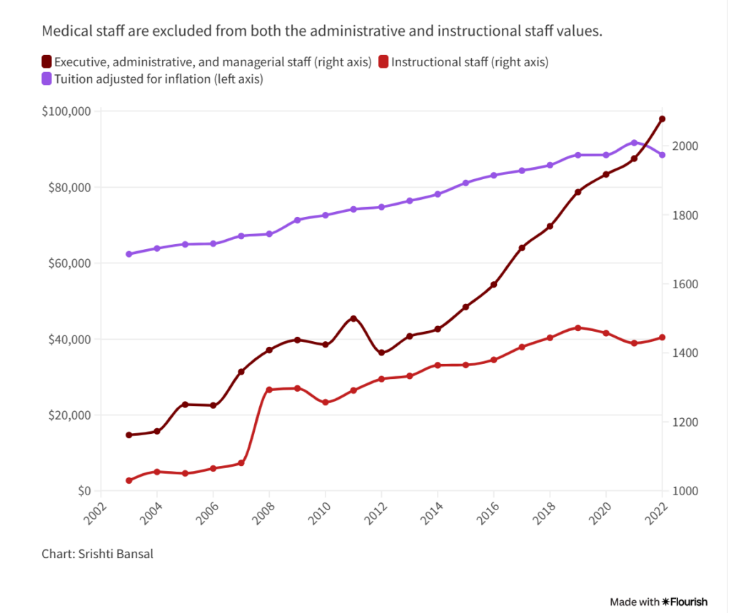 Benjamin Ginsberg, who published Fall of the Faculty: The Rise of the All-Administrative University and Why it Matters in 2013 (and too late to keep me out of a PhD program,) called these well-intentioned bureaucrats “Deanlets.” They have multiplied to far outnumber teaching or research faculty (and in a few cases, including Harvard and Yale, actually outnumber students). Their roles are focused on how to keep students engaged on campus and moving swiftly through the program.