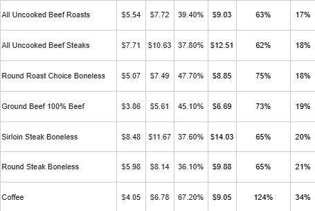 There are limited offsets. Staple carbohydrates such as pasta and potatoes are up only about 10 percent since 2019 and are cheaper than a year ago. Gasoline prices have risen less than 25 percent since 2019 and have declined modestly over the past year. But these improvements are insufficient to materially offset higher costs elsewhere in household budgets.