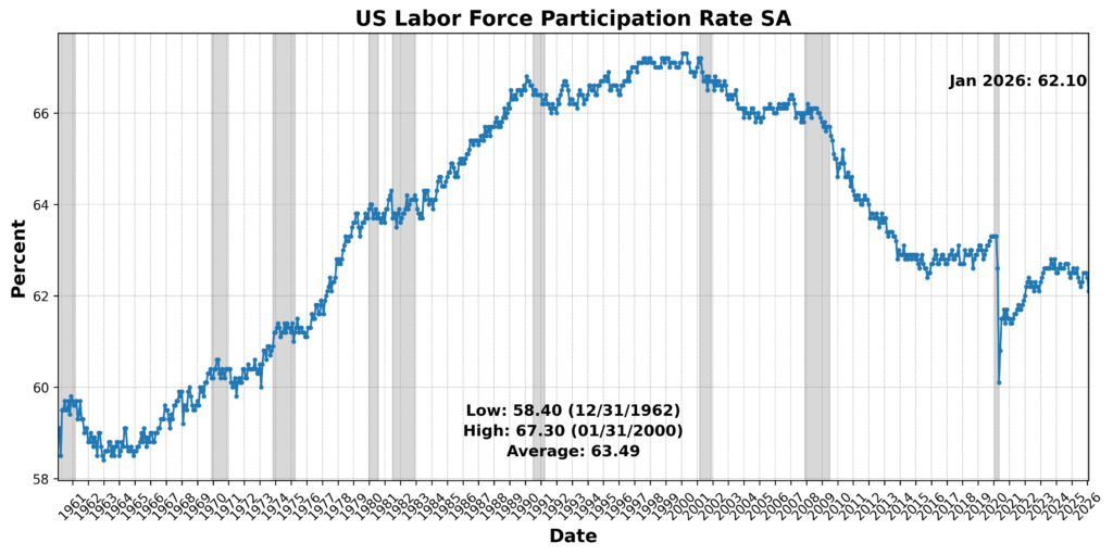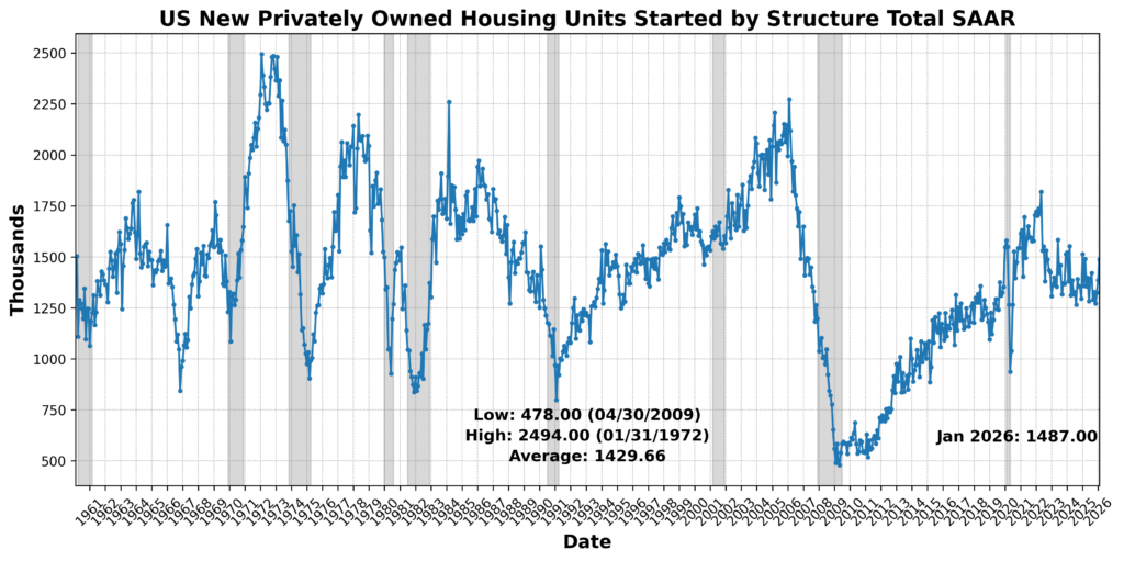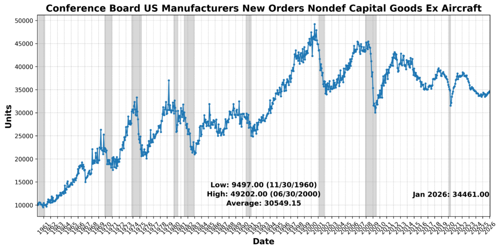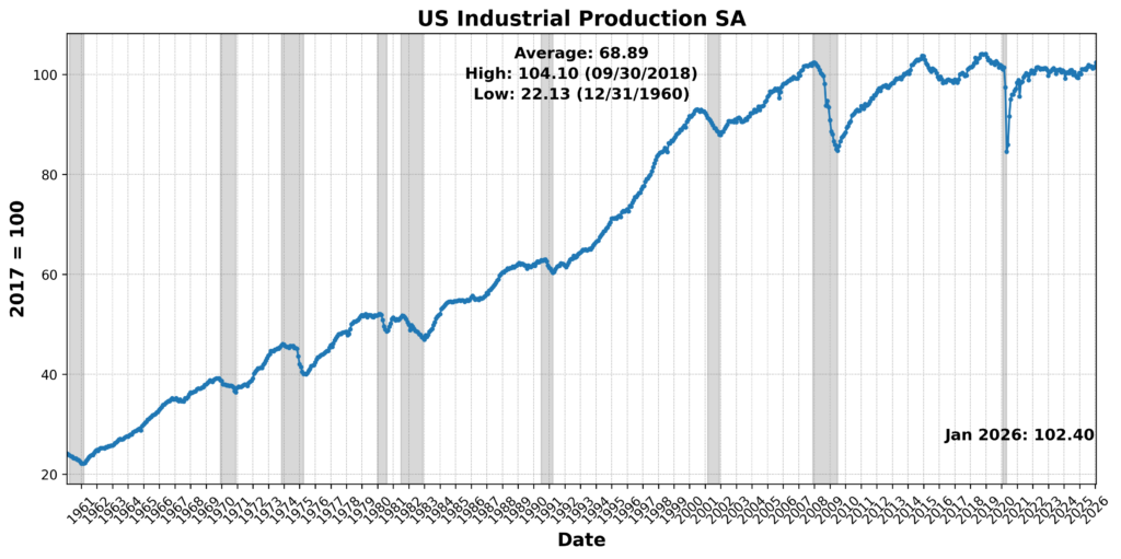 Productivity and industrial output data together point to an economy that is still generating growth efficiently, even as sectoral performance remains uneven. Labor productivity rose at a solid 2.8 percent annualized pace in the fourth quarter, with prior quarters revised higher due to lower measured hours worked, reinforcing a favorable underlying trend. While unit labor costs increased at a 2.8 percent annualized rate in the quarter — driven by stronger compensation — the four-quarter trend remains subdued at just 1.3 percent, indicating that labor costs are not exerting meaningful inflationary pressure. This combination — steady productivity gains alongside contained cost growth — suggests that output can continue to expand without forcing a policy response from the Federal Reserve on labor-driven inflation grounds.